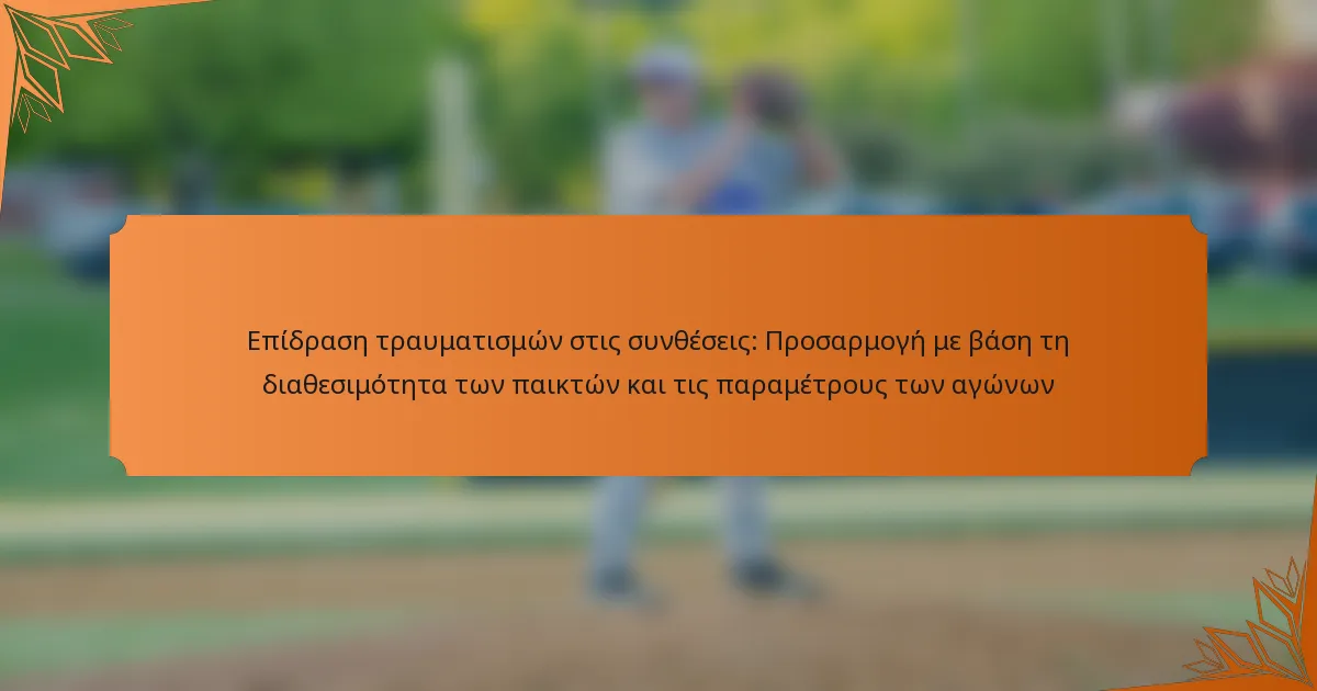 Οι τραυματισμοί επηρεάζουν σημαντικά τις συνθέσεις των ομάδων, αλλάζοντας τη διαθεσιμότητα των παικτών και επηρεάζοντας τη συνολική δυναμική της ομάδας. Η προσαρμογή των συνθέσεων με βάση την κατάσταση των τραυματισμένων παικτών είναι κρίσιμη για τη μεγιστοποίηση της απόδοσης και τη βελτίωση των πιθανοτήτων επιτυχίας στους αγώνες.